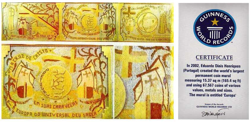 O maior painel do mundo feito com moedas. O painel Europa, este painel está no Guinness.